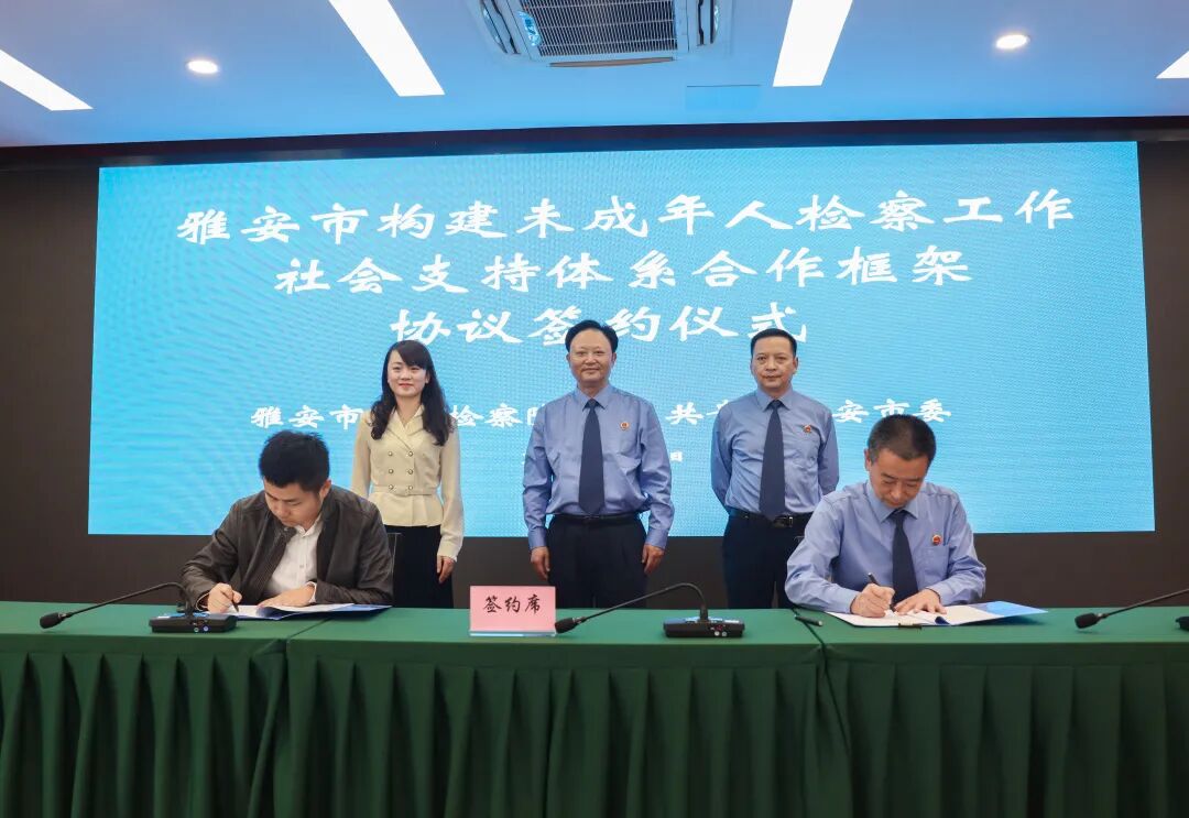 签约仪式由雅安市检察院党组副书记、副检察长杨军主持。雅安市检察院党组成员、副检察长赵学东、共青团雅安市委副书记裴胜军代表两家单位共同签署了合作框架协议。