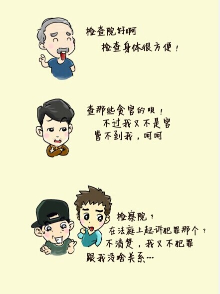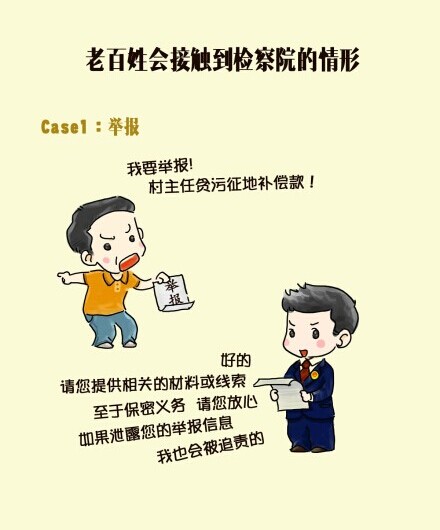 “检察院?检查身体很方便啊!”“反正我又不是贪官,检察院查不到我啦。”在街头调查中,这样的误解屡见不鲜。老百姓到底在哪些情况下会接触到检察院呢?举报、报案、刑事立案监督、生效裁判监督……老百姓怎样和检察院打交道呢?看下面漫画,一目了然。