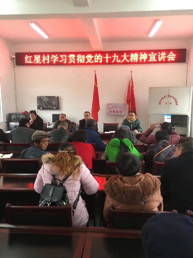 11月22日,荥经县人民检察院检察长周富林率副检察长杨欣一行,在荥河乡党委书记吴玉均的陪同下深入红星村召开学习贯彻党的十九大精神宣讲会,会上周检传达了县委宣讲团党的十九大精神宣讲动员会暨集体备课会精神,并将十九大报告中的重要精神进行了宣读,之后结合自身开展的脱贫攻坚工作与来会人员进行了讨论。