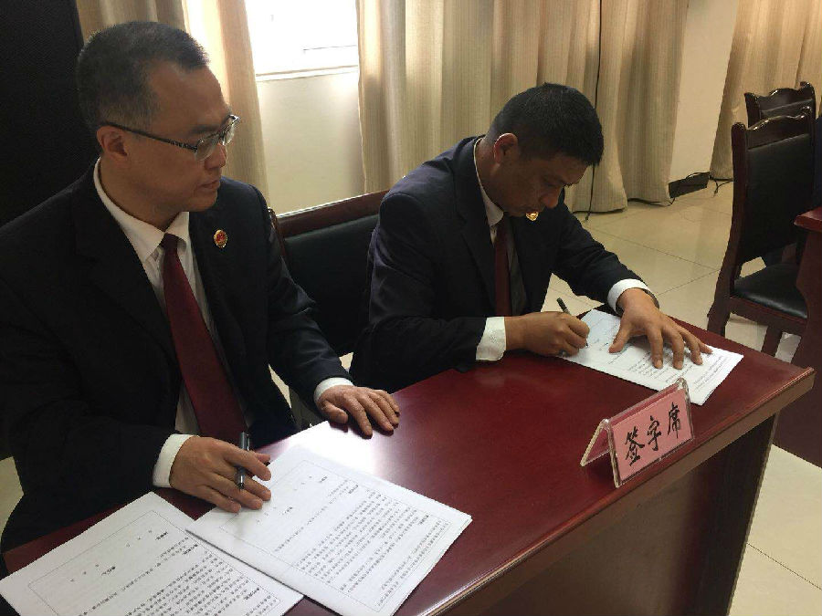 签定仪式上,院党组书记、检察长周富林与班子成员签定责任书;各班子成员与分管科室负责人之间签定责任书;同时,每位干警签定了《荥经县人民检察院检察干警廉政承诺书》。