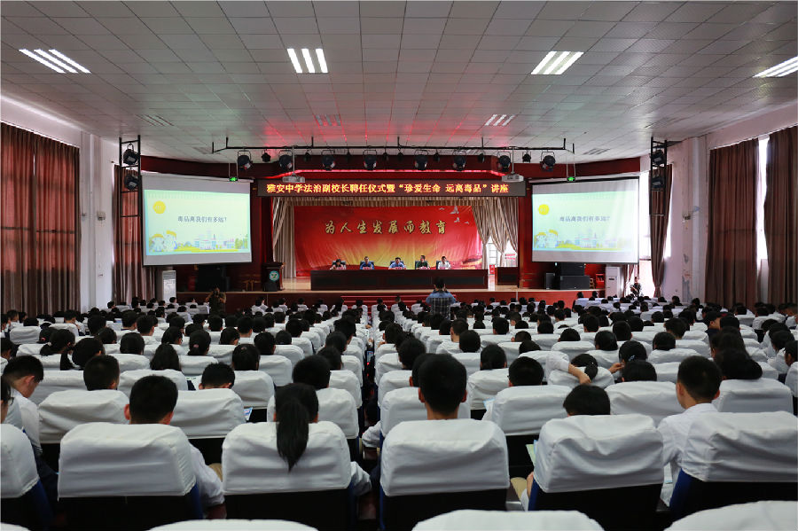 雅安市人民检察院检察长刘孝勇受聘担任雅安中学法治副校长,并为500余名师生带来“珍爱生命 远离毒品”讲座