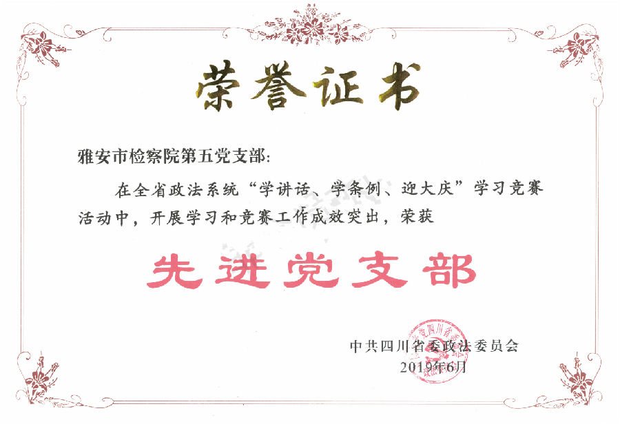 光荣榜:雅安市检察院第五党支部荣获“先进党支部”
