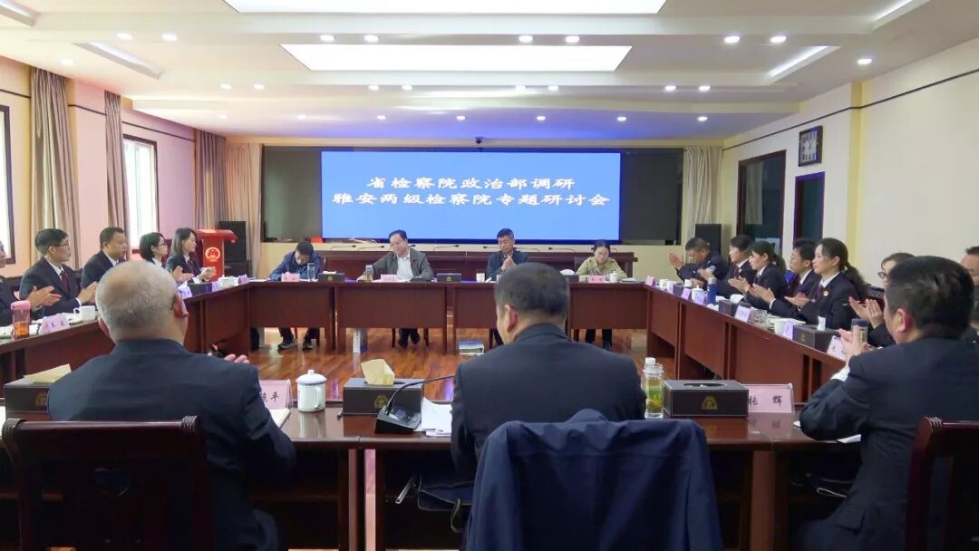 10月23日上午,四川省检察院赴雅调研基层院建设座谈会在石棉县院多功能会议室召开,省检察院党组成员、政治部主任付全忠,政治部副主任兼干部一处处长石光学,政治部干部二处处长鄢斌出席会议。雅安市院党组副书记、副检察长杨军及政治部各处相关人员,各县(区)院政治处主任,石棉县院全体班子成员参会,会议由雅安市院党组副书记、副检察长杨军主持。