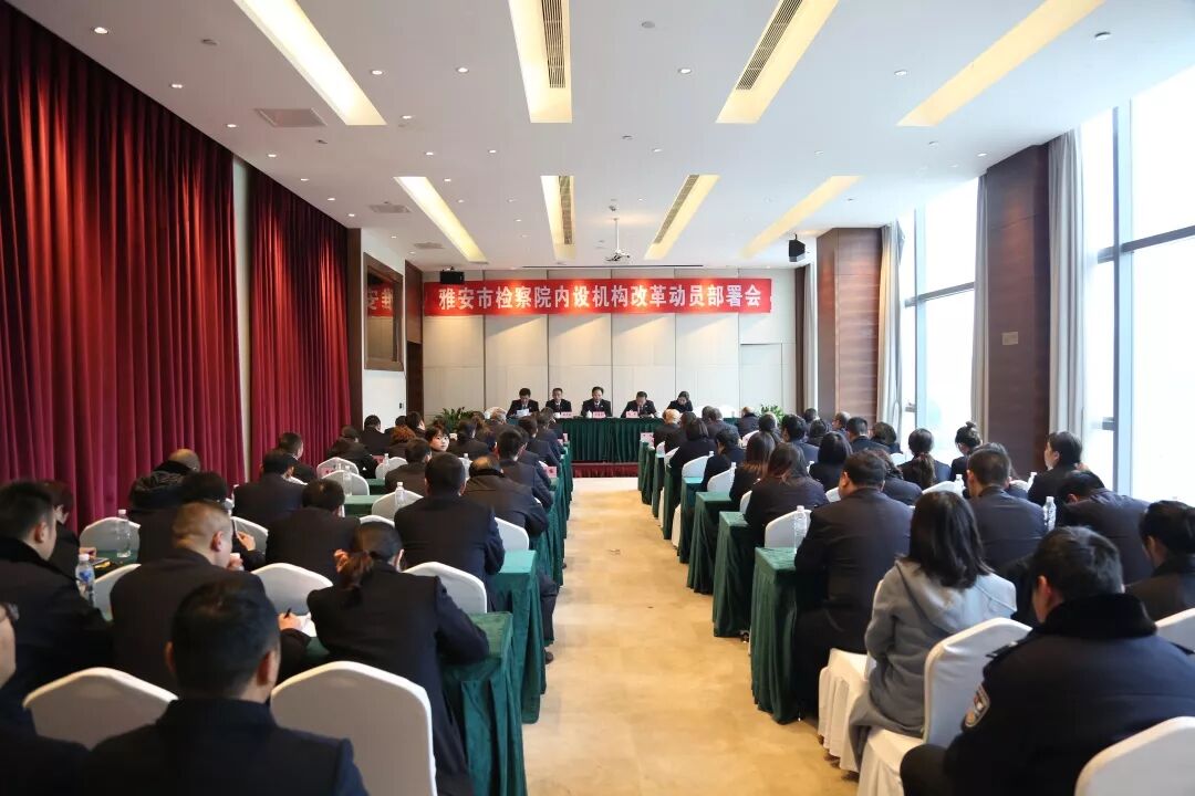 市检察院党组书记、检察长刘孝勇出席会议并讲话。党组副书记、副检察长杨军主持会议,党组成员、政治部主任王松介绍说明《雅安市人民检察院内设机构改革方案》《雅安市人民检察院内设机构人员调整方案》,市检察院全体干警参加会议。