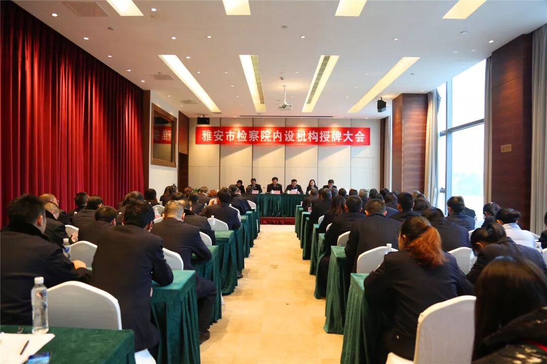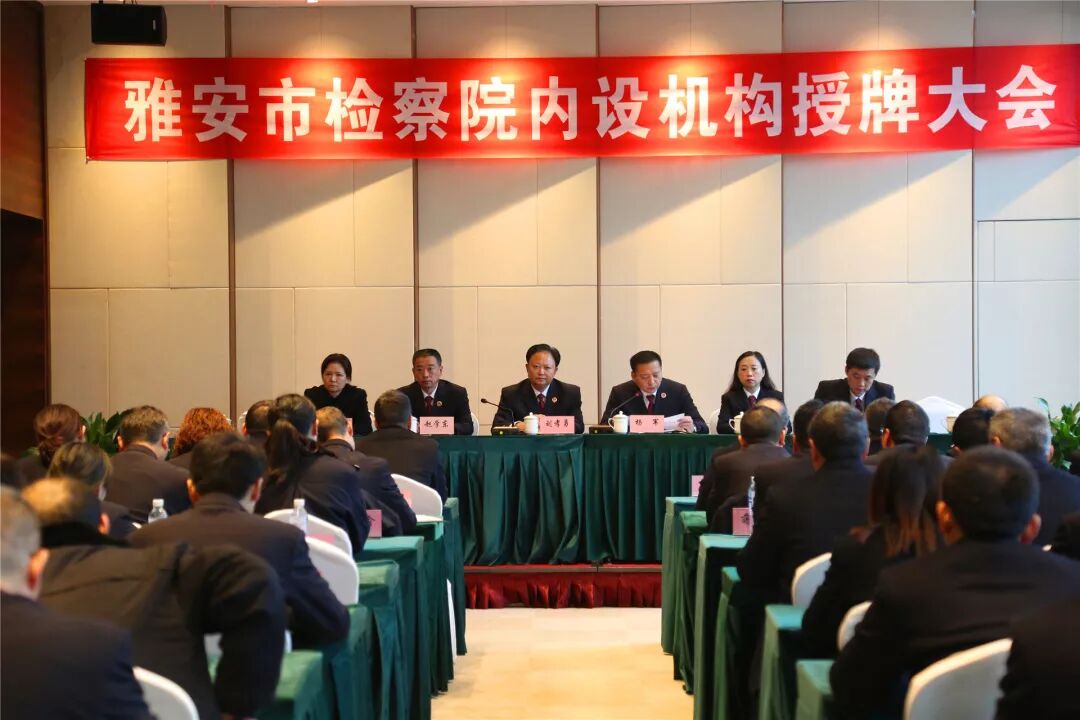 近日,雅安市检察院机关内设机构授牌大会召开,市院党组书记、检察长刘孝勇出席会议并讲话。市院党组副书记、副检察长杨军主持会议,全体干警参加会议。