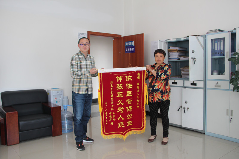 近日,荥经县烈太乡东升村村民王某某母女给我院侦监科送来一面“依法监督保公正,伸张正义为人民”的锦旗,对我院侦监科通过办案为其追回民事赔偿款表示感谢。