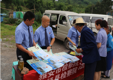 近日,雅安市人民检察院控申处处长吴彤、副处长杨荣一行与我院控申干警一起到我县龙苍沟镇联合开展第十八个“举报宣传周”宣传活动。本次宣传周的主题为“加强举报人保护,惩治群众身边腐败”。活动中,以挂横幅、散发宣传资料、图片、联系卡等形式开展宣传,并现场接受群众法律咨询,大力宣传检察机关工作职能,并向群众讲解举报工作制度,特别是举报人保护制度及举报奖励制度,鼓励群众积极举报发生在他们身边的腐败。